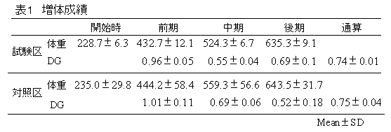 表1 増体成績
