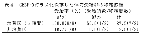 表4 GESP-Xガラス化保存した体内受精卵の移植成績