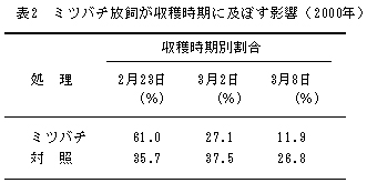 表2 ミツバチ放飼が収穫時期に及ぼす影響(2000年)