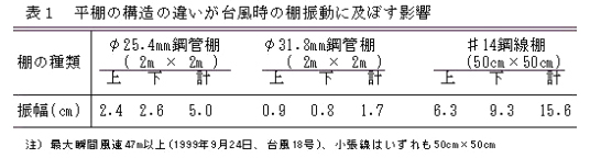 表1 平棚の構造の違いが台風時の棚振動に及ぼす影響