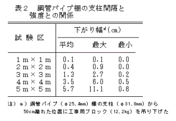 表2 鋼管パイプ棚の支柱間隔と強度との関係