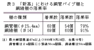 表3 「新高」における鋼管パイプ棚と鋼線棚の落果率