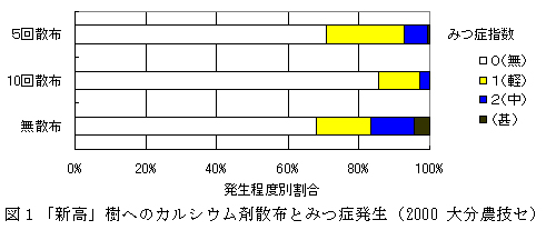 図1 「新高」樹へのカルシウム剤散布とみつ症発生(2000大分農技セ)