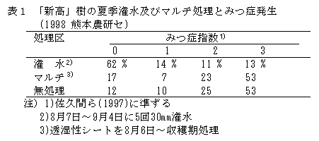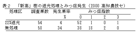 表2 「新高」樹の遮光処理とみつ症発生(2000高知農技セ)