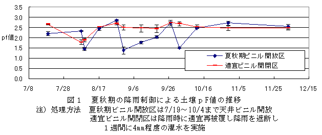 図1 夏秋期の降雨制御による土壌pF値の推移