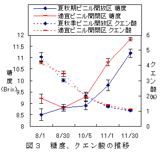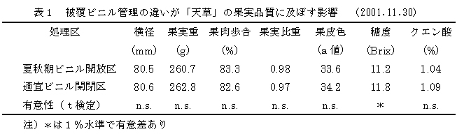 表1 被覆ビニル管理の違いが「天草」の果実品質に及ぼす影響(2001.11.30)