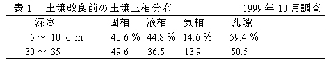 表1 土壌改良前の土壌三相分布1999年10月調査