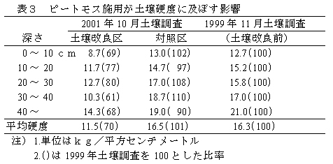 表3 ピートモス施用が土壌硬度に及ぼす影響