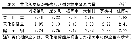 表3 黄化落葉症が発生した樹の葉中窒素含量(%)