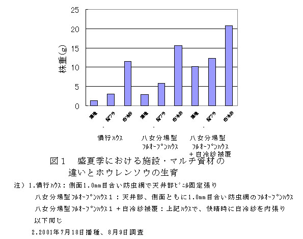 研究課題名:軽量野菜の夏季高品質安定栽培技術の確立 予算区分 :県特 研究期間 :平成12年度(平成11年〜14年)