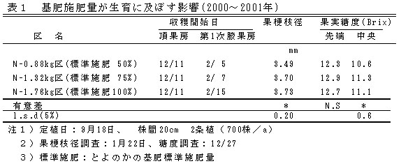 表1 基肥施肥量が生育に及ぼす影響(2000〜2001年)