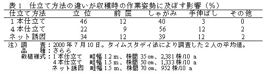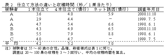 表2 仕立て方法の違いと収穫時間(秒/1果当たり)