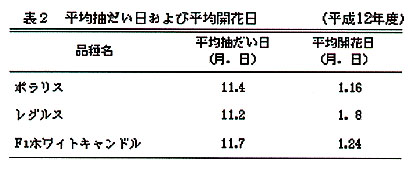 表2 平均抽だい日および平均開花日