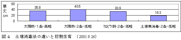 図4 土壌消毒法の違いと初期生育(2001.9.26)