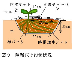 杉バークを培地に使用した隔離床の設置状況は図3に示すとおり。