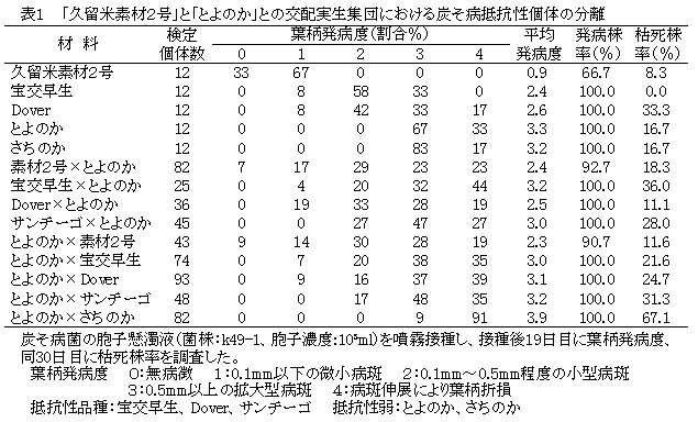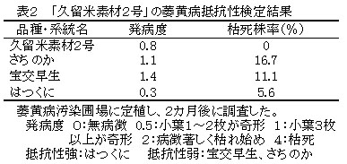 表2 「久留米素材2号」の萎黄病抵抗性検定結果