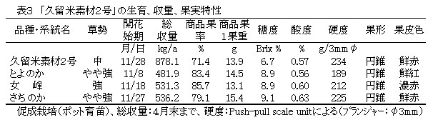 表3 「久留米素材2号」の生育、収量、果実特性