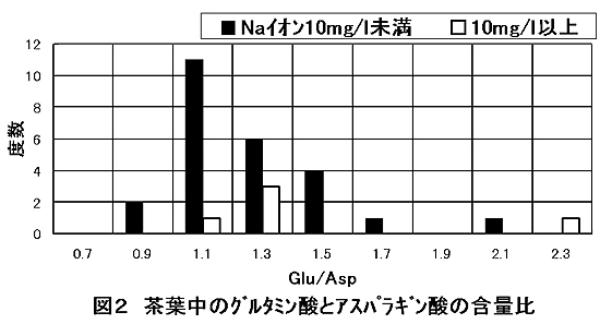 図2 茶葉中のグルタミン酸とアスパラギン酸の含量比