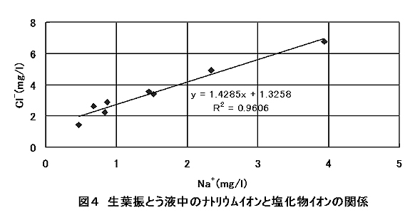 図4 生葉振とう液中のナトリウムイオンと塩化物イオンの関係