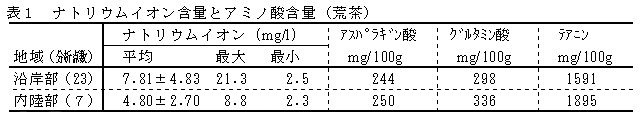 表1 ナトリウムイオン含量とアミノ酸含量(荒茶)