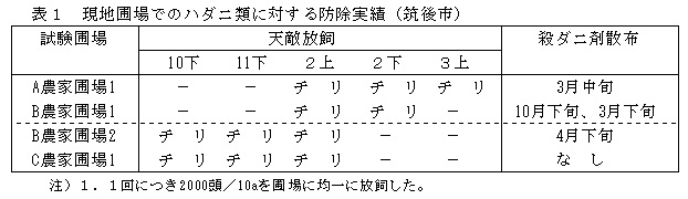 表1 現地圃場でのハダニ類に対する防除実績(筑後市)