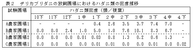 表2 チリカブリダニの放飼圃場におけるハダニ類の密度推移