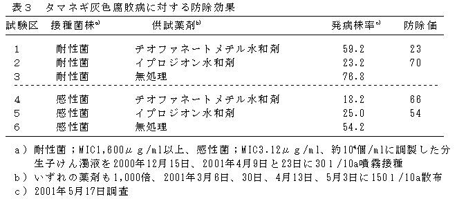 表3 タマネギ灰色腐敗病に対する防除効果