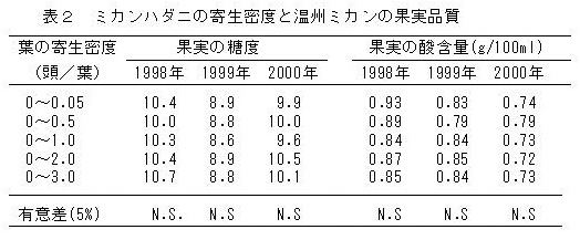 表2 ミカンハダニの寄生密度と温州ミカンの果実品質