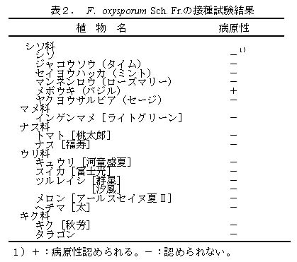 表2 F. oxysporum Sch. Fr.の接種試験結果