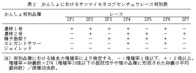 表2 かんしょにおけるサツマイモネコブセンチュウレース判別表