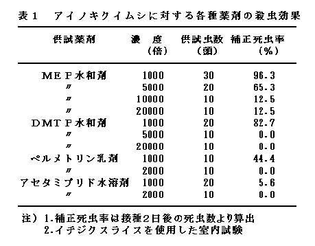 表1 アイノキクイムシに対する各種薬剤の殺虫効果