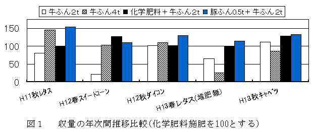 図1 収量の年次間推移比較(化学肥料施肥を100とする)