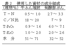 表2 使用した資材の成分組成