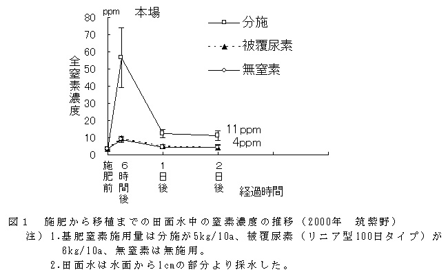 図1 施肥から移植までの田面水中の窒素濃度の推移(2000年筑紫野)
