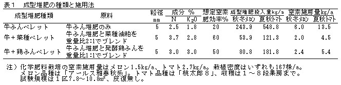 牛ふん成型堆肥のメロンおよびトマトに対する施用法とカリウム集積防止