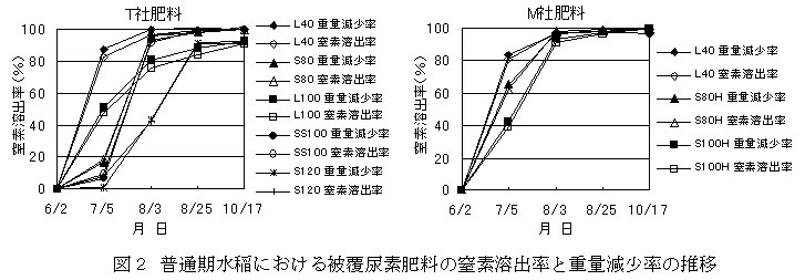 - 被覆尿素肥料、水稲、窒素溶出率、重量減少率