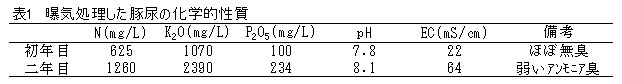 表1 曝気処理した豚尿の化学的性質