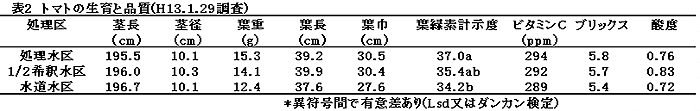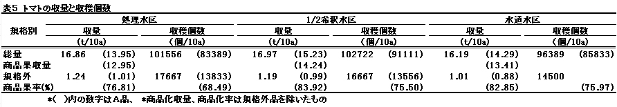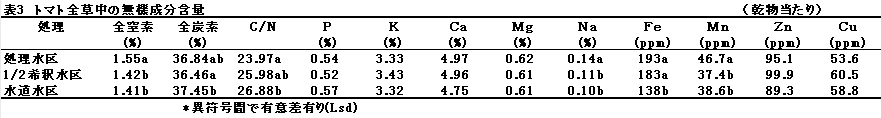 以上のことから、トマトに関しては都市排水処理水は農業用水資源としてトマト栽培に有効に活用できる。