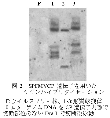 図2 SPFMVCP遺伝子を用いたサザンハイブリダイゼーション