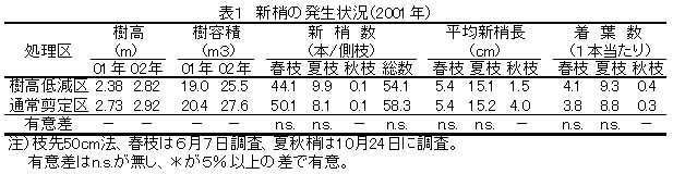 表1 新梢の発生状況(2001年)