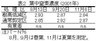 表2 葉中窒素濃度 (2001年)