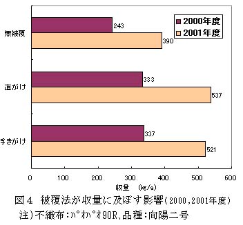 図4 被覆法が収量に及ぼす影響(2000,2001年度)