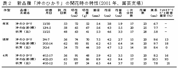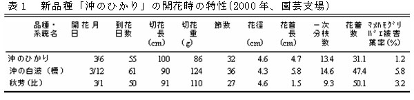 表2 新品種「沖のひかり」の開花時の特性(2001年、園芸支場)