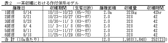 表2 一斉収穫における作付体系モデル