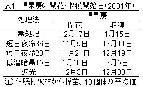 短日夜冷処理により収穫が早まっても、1〜2月の収量が低下するため全体的な収量は増加しない。