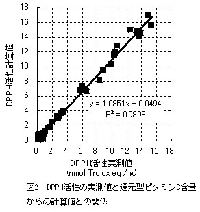 図2 DPPH活性の実測値と還元型ビタミンC含量からの計算値との関係