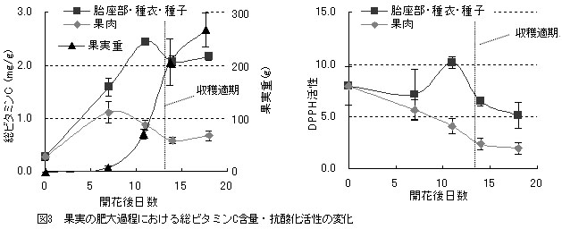図3 果実の肥大過程における総ビタミンC含量・抗酸化活性の変化