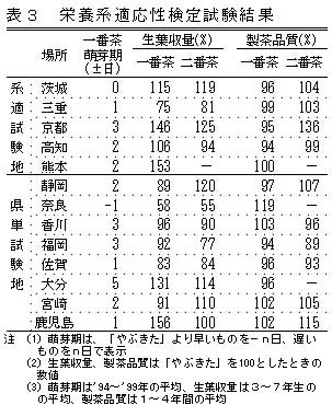 一番茶の萌芽期、摘採期は「やぶきた」より1〜2日遅い中生種である(表1、表3)。