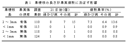 表1 果梗枝の長さが果実腐敗に及ぼす影響