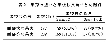 表2 果形の違いと果梗枝長発生との関係